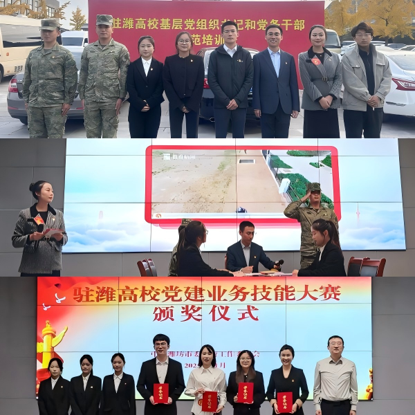 近日,驻潍高校基层党组织书记和党务干部示范培训班暨党建业务技能大赛在山东科技职业学院举办。我院由王涛、胡廷玉、薛淑予三位党员教师及学生组成的队伍参赛,在实务操作项目中以“主题党日淬初心,党员教育展新姿”为题展示主题党日活动,表现突出,荣获二等奖。