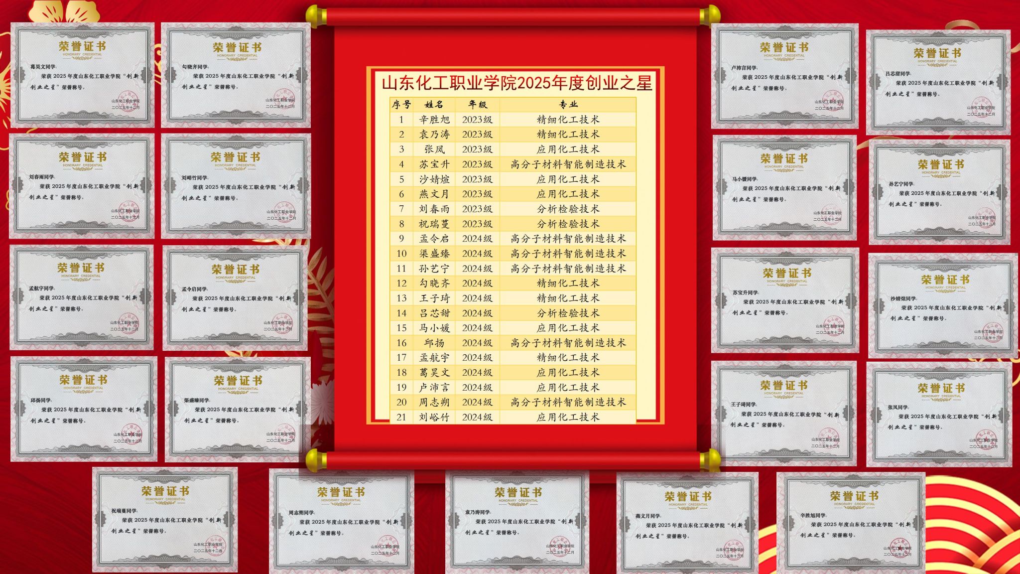 喜报|化学工程学院21位学子获评学校“创新创业之星”