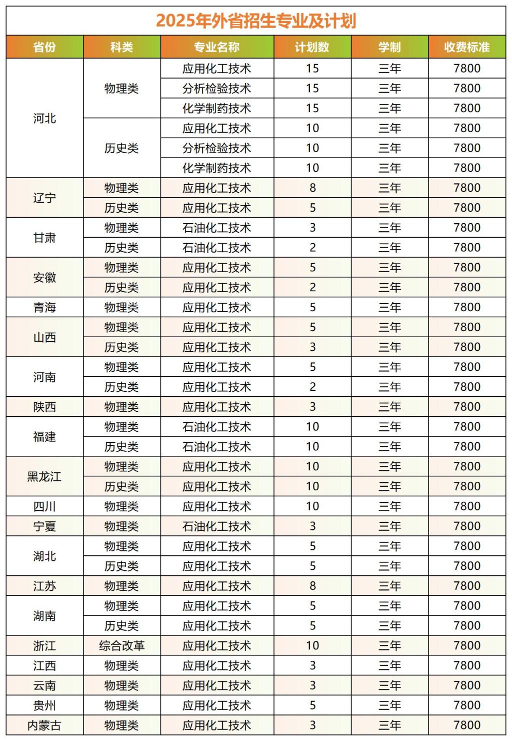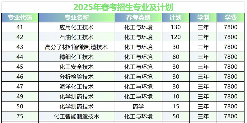 就业方向:主要面向化工、能源、环保、轻工、医药、石化等企事业单位,从事化工生产操作控制、化工设备维护及技术管理、产品检测、销售等工作。
