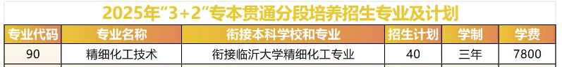 精细化工技术专业参与山东省高等学校高端化工材料新技术研发中心建设,是山东省校企合作(产教融合)示范性品牌专业、化工技术省级品牌专业群的重点专业,潍坊市高水平专业群重点专业,是我校首个3+2对口贯通分段培养试点专业,衔接临沂大学精细化工专业。专业师资力量雄厚,立项省市级课题30余项,专利20余项,出版教材5部,该专业学生获得2024年“建行杯”山东省大学生创新大赛(2024)暨中国国际大学生创新大赛银奖等26项省级及以上荣誉,2项市级荣誉,34项校级荣誉;齐鲁工匠后备人才3人。专业深化校企合作、育训并举,与万华化学、海化集团、京博集团深化产教融合,共建产业学院、企业学院,构建产学研用的一体化育人体系。