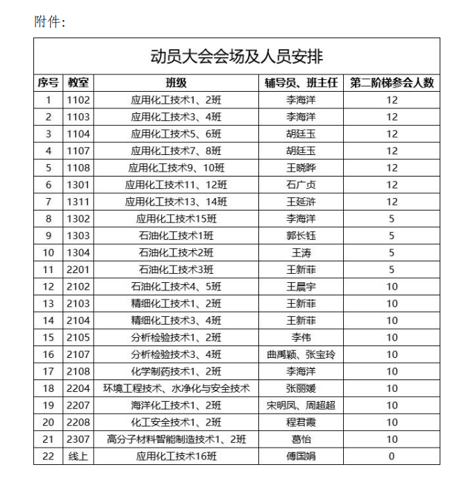 1.各班按照《附件》中要求到主会场(第二阶梯)参会的学生数组织班级主要学生干部、优秀学生等到主会场参会,13:50前到场就座完毕。