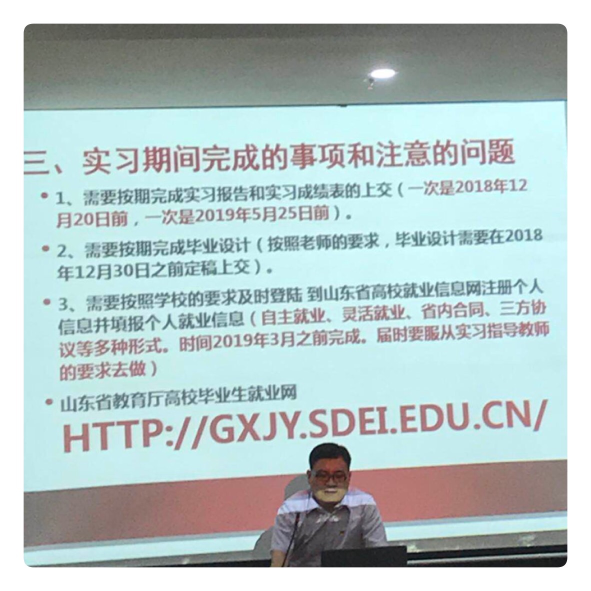 会上,教务处处长姚宾首先介绍了学生在顶岗实习教学管理办法并作相关工作安排。接着,招生就业处处长潘若方着眼于从交通与生产安全、顶岗实习协议签订、未就业学生的管理以及就业信息填报等作出进一步要求。学生处处长罗勇详细解读了关于2016级学生文明离校、顶岗实习期间的学生管理、毕业档案派遣等相关工作安排,并明确了具体要求,让学生在顶岗实习的一年内安心实习,并对学业要求做到心中有数。学院纪委书记耿晓明着重强调了顶岗实习期间学生该干什么,怎么干,安全问题、身份问题,要求每位学生做明白人,干明白事,并保持与学校老师联系,按照学校要求完成相关工作。专业指导教师吕宜春对学生顶岗实习期间的学生毕业设计论文的格式和规范作出明确具体要求。最后,化学工程系冯主任就本次2016级学生实习动员大会进行了总结发言,再次强调顶岗实习的重要性,要求学生进入企业后牢记工匠精神和劳模精神,积极工作,发挥专业技能,在社会树立山东化工职业学院的标杆形象,争做化院的优秀学子,服务行业,回馈社会。