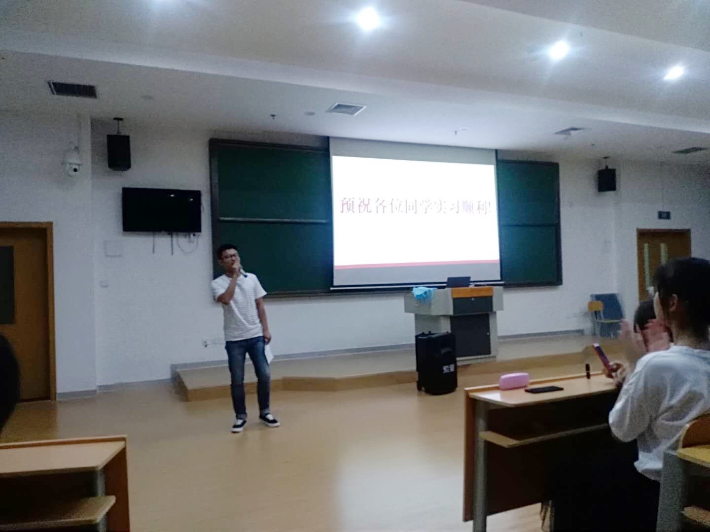 最后,冯主任作大会总结。冯主任在实习动员大会讲话中强调,顶岗实习是学校教学的一个重要组成部分,能使学生在工作岗位上承担全部职责,独当一面,具有很大的挑战性,对学生能力锻炼起很大作用,要高度重视顶岗实习的重要性。顶岗实习也是同学们将所学知识运用到实践的过程,要明确实习目标,珍惜实习机会。冯主任最后预祝各位学生实习顺利。整场动员大会,同学们认真听讲,倍感受益。
