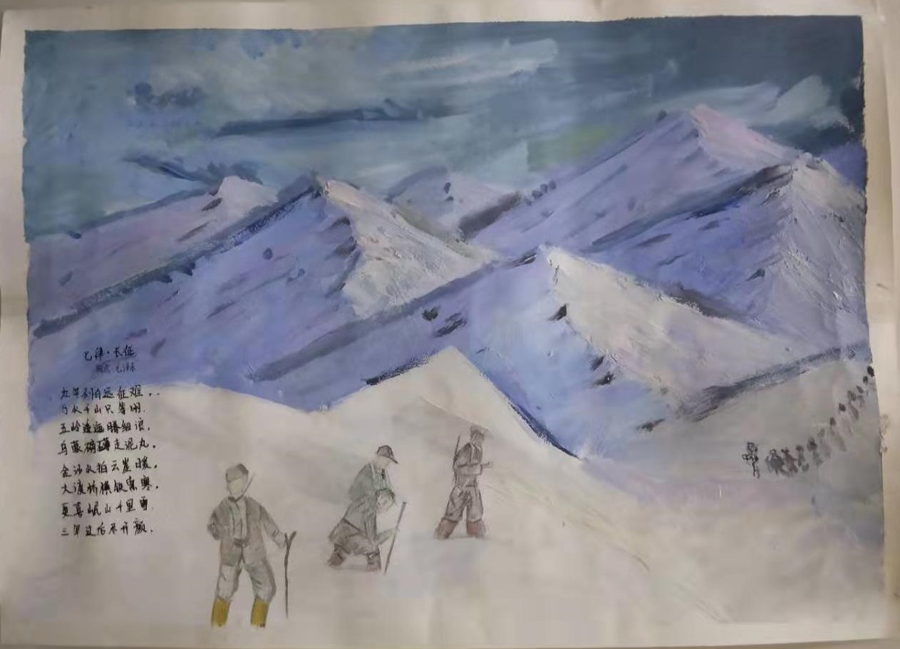 这次书画活动展览的作品,均来自同学们自己创作,均受到好评。展览作品涉及题材丰富,形式多样,风格鲜明,情景人物,包罗万象。从书法上看有毛笔书法和硬笔书法之分,并有方正规矩的正楷。从绘画作品看,有水彩、素描与浮雕作品。其主题围绕着红军不怕远征难,为了建设新中国不怕牺牲,艰苦奋斗的精神。毛主席的沁园春雪,端庄的写出来,其豪气跃然纸上。红军艰苦过雪山的画面,更是令当时的景象历历在目,磅礴的画面使人久久不能忘怀。
