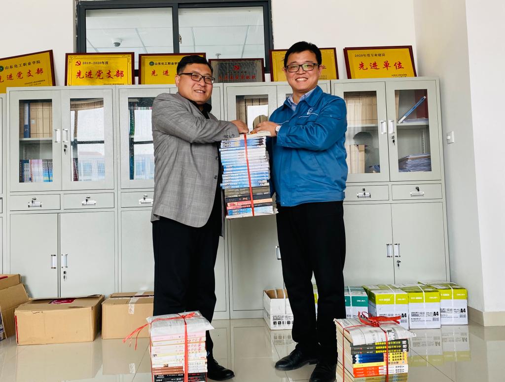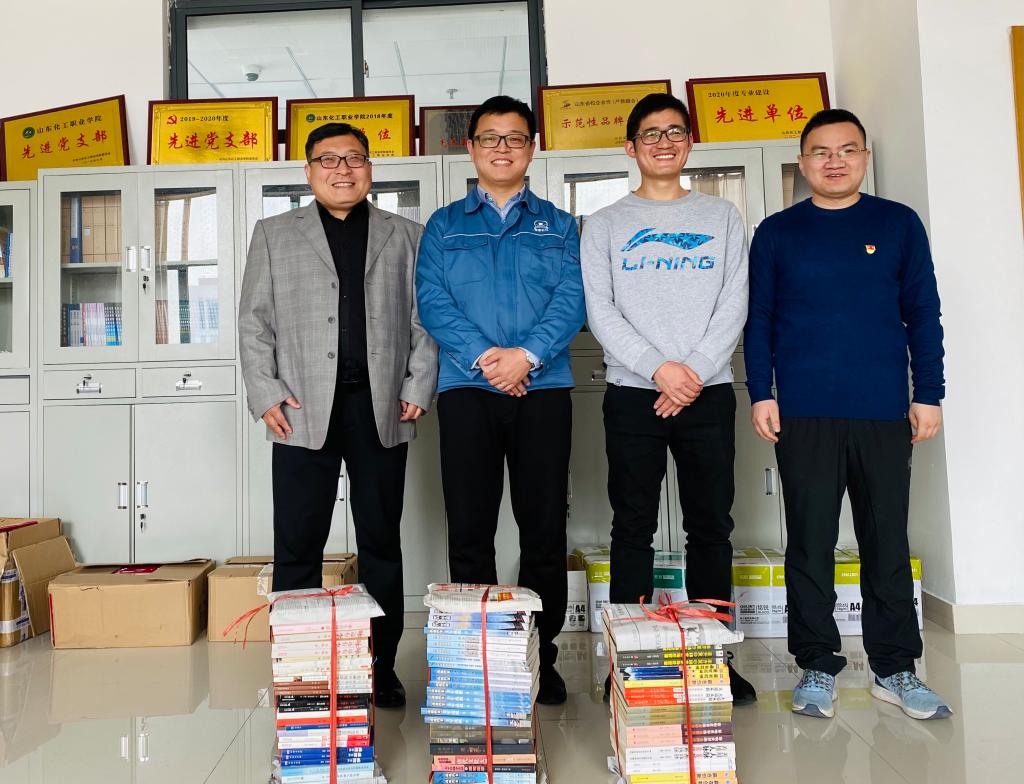 在这个春暖花开,万物可期的季节,4月6日淄博鑫泰石化有限公司为化学工程学院送来了一份特殊的礼物——1000册图书!图书捐赠仪式在化学工程学院2301办公室举行,化学工程学院副院长吕宜春,院长助理葛彩霞和党支部副书记王恒磊出席了捐赠仪式。