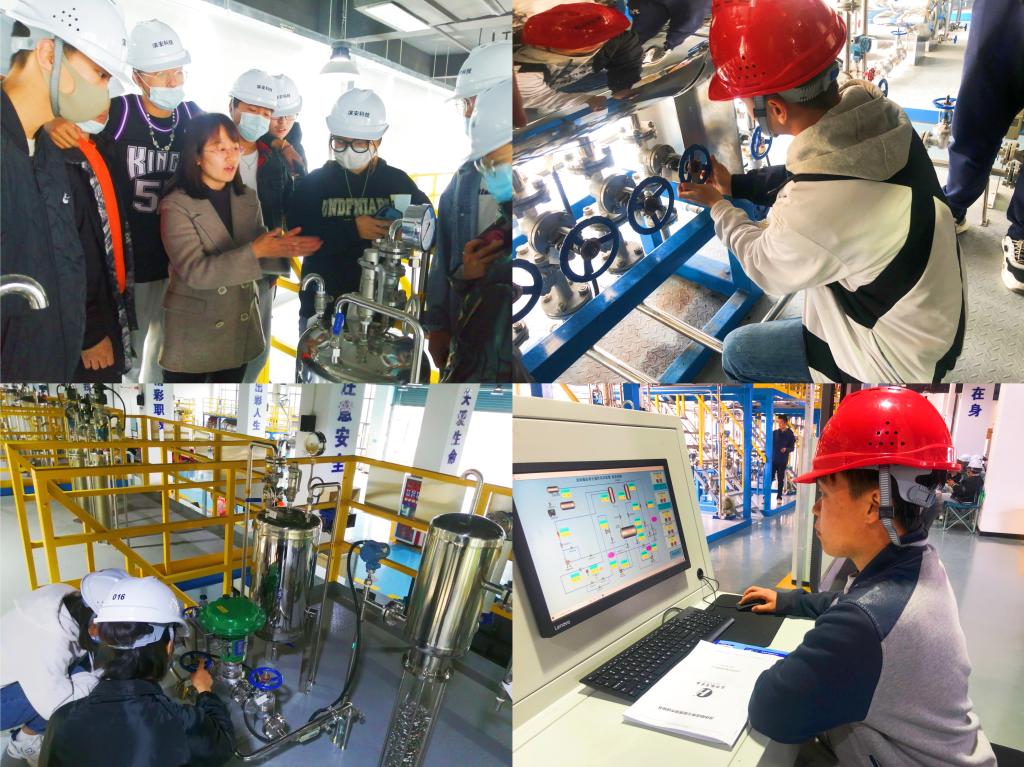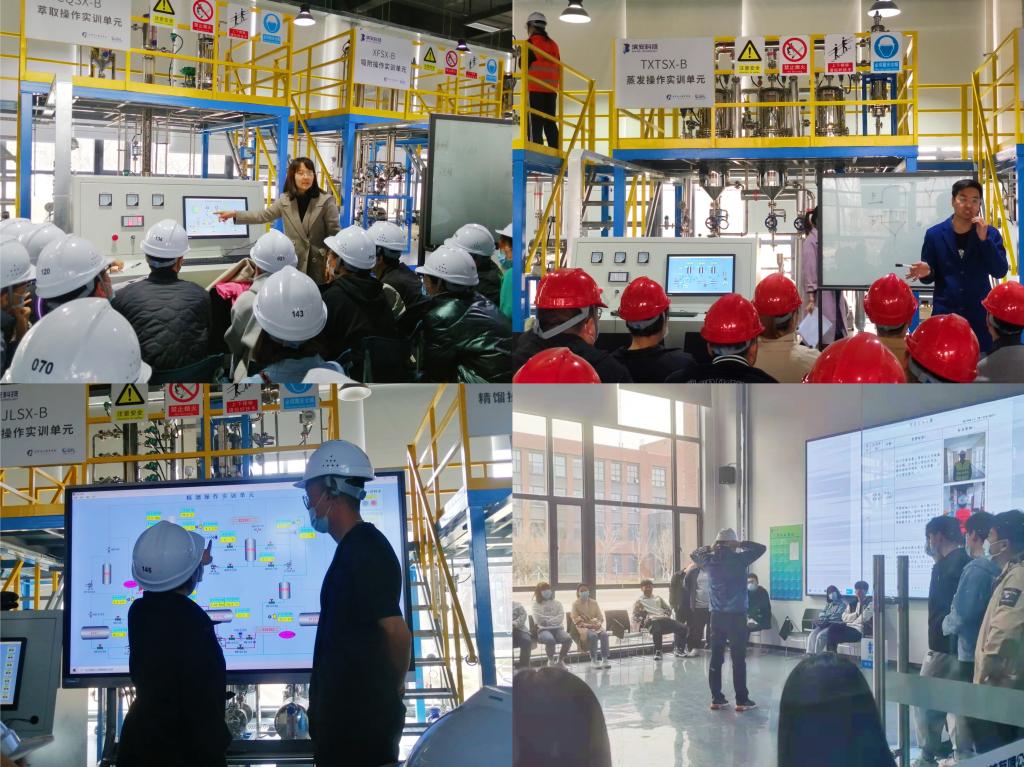 图为化工实训过程的理论授课和单元操作现场