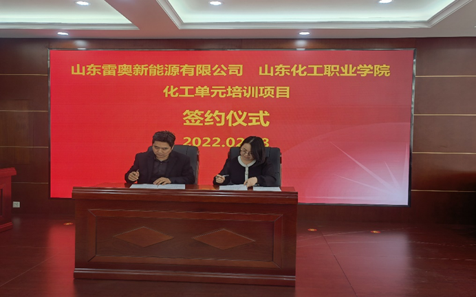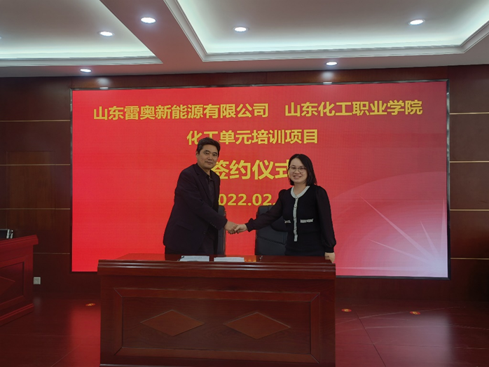 2022年2月18日上午,在山东雷奥新能源有限公司举行化工单元培训项目培训签约仪式。围绕企业员工素质提升、冠名班开设、成立企业技术工程中心、学生实习等方面进行了充分的交流,雷奥新能源侯跃兴经理表示,以本次培训为校企合作的起点,后续将会进一步深化校企合作项目,落实产教融合模式,促进双方共赢。