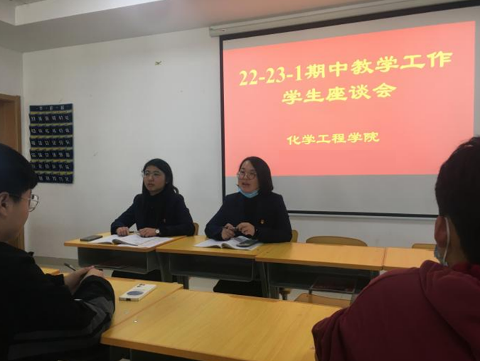 为了切实了解学生们在学习中遇到的各种问题和需求,增进师生之间沟通和交流,改进教学工作、提升教学水平,2022年10月27日下午,化学工程学院在2308召开了期中学生座谈会,副书记、副院长葛彩霞、院长助理王欣、教务员陈学惠、程君霞,教研部主任傅国娟、张宝玲、周超超及46名各班学生代表参加。座谈会由院长助理王欣主持。