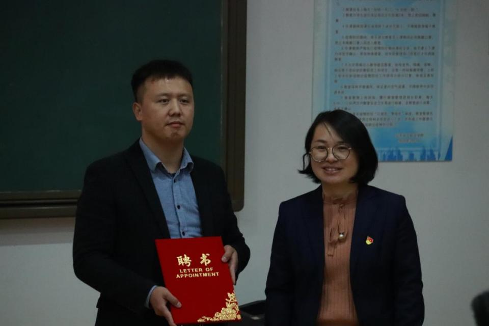 此次讲座正式开始前,化学工程学院副院长、党支部副书记葛彩霞为山东潍坊润丰化工股份有限公司经理郝明青颁布了化工产业导师聘书。