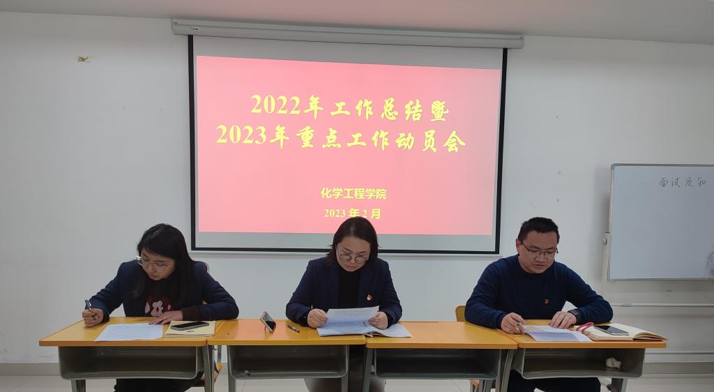 2023年2月22日下午,化学工程学院通过线上、线下相结合方式,在2308组织召开了2022年工作总结暨2023年重点工作动员会。会议由化学工程学院党总支副书记王恒磊同志主持,学院全体教职工参加。