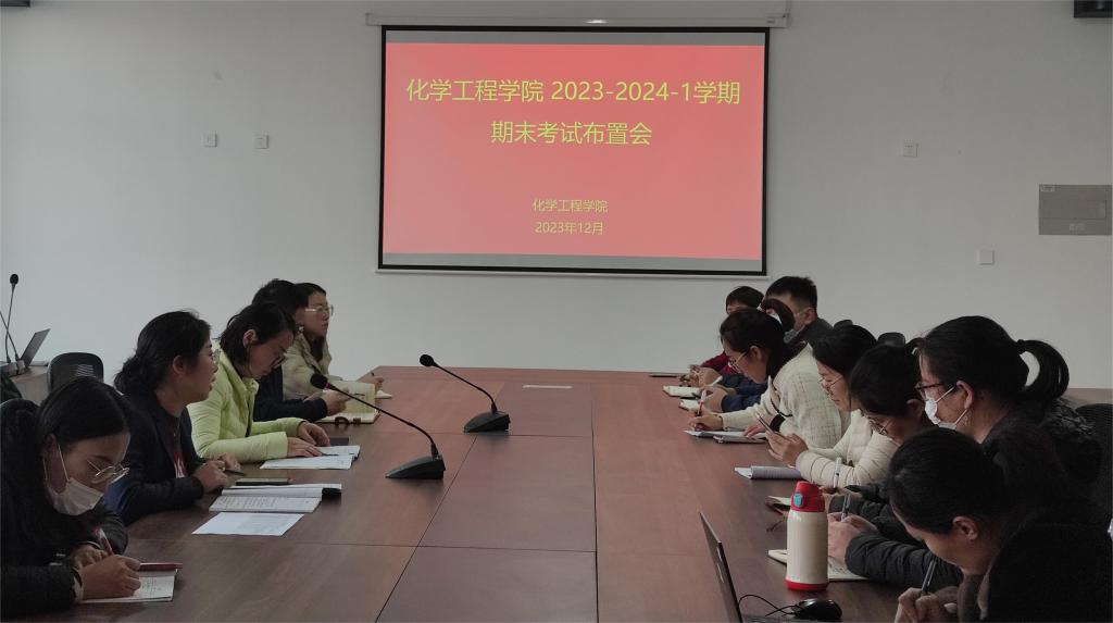 2023年12月7日下午,化学工程学院在1213会议室召开了2023-2024-1学期期末考试布置会,组织全体教职工参会。本次会议旨在传达学校考试相关组织和管理办法,严明考试纪律,肃正考试风气,针对考试中可能会出现的情况做好充分的准备,确保期末考试顺利进行。