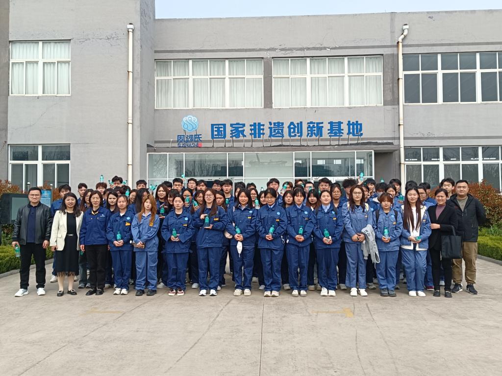 早上,师生整装待发,山东旭锐新材股份有限公司人本管理中心马总监和王经理随大巴车到校迎接。到达企业后,山东默夙投资集团有限公司人本管理中心总监王彦玲一行带领学生到夙沙科技非遗创新基地参观,并亲自为学生进行了详细的讲解。
