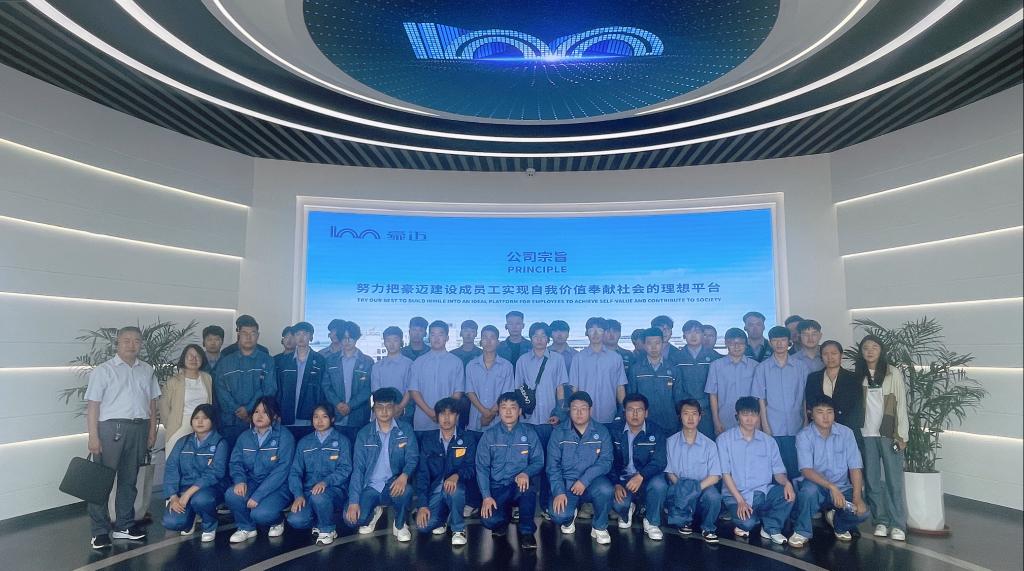 当天下午,师生一行又来到了豪迈实训基地,基地负责人李工对基地的大型设备的操作原理及运行程序进行了专业讲解,学生学习热情高涨,纷纷表示今后将全面提升自身专业能力,以便更好的实习就业。