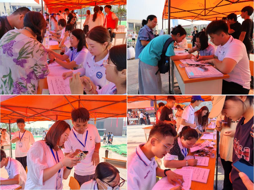 为了顺利迎接新生的到来,志愿者积极主动、热情耐心,从报到前夕的场地搭建,到接待带领新同学入住宿舍等,遍布他们的身影。多栋宿舍楼下以及道路旁都有迎新志愿服务点,师生志愿者们积极踊跃的帮新生搬运行李、领取被褥、指引答疑,大大发扬了不怕辛劳、甘于奉献的志愿者精神。一名学生家长高兴地说:“报到各环节都进行得十分顺利,感谢学校细致用心的工作。希望孩子在这么好的环境能有新的开始,好好发展,实现自己的梦想。”炎炎夏日,挡不住一颗颗赤诚而热烈的心,志愿者们汗如雨下却依旧绽放着最美的笑容,一道道身影一张张笑脸构成了迎新现场的美丽风景线。