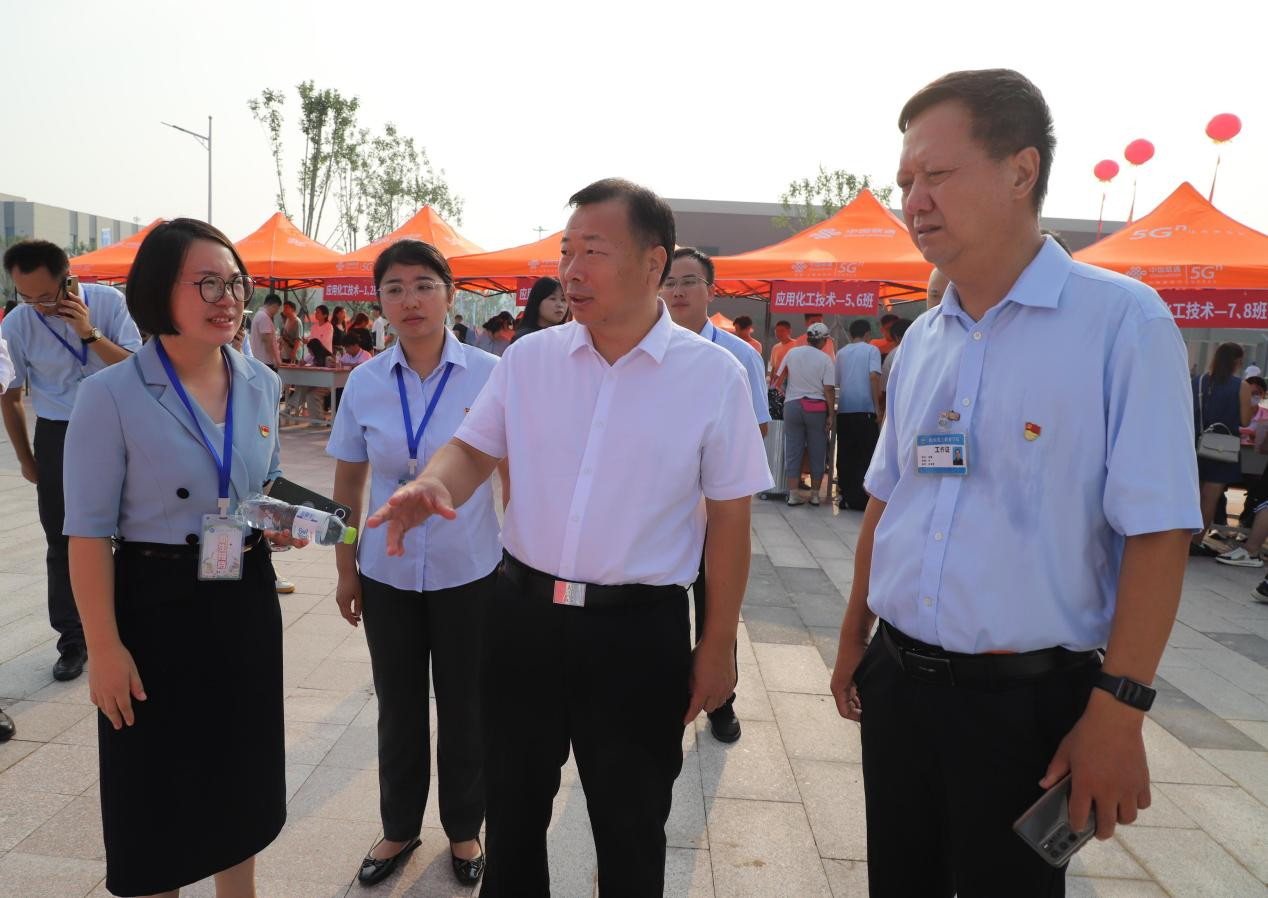 迎新现场,山东化工职业学院校长贺志强、党委副书记潘慧,化学工程学院院长葛彩霞与新生及新生家长亲切交谈,让来自全国各地的家长们感受到学校的温暖。