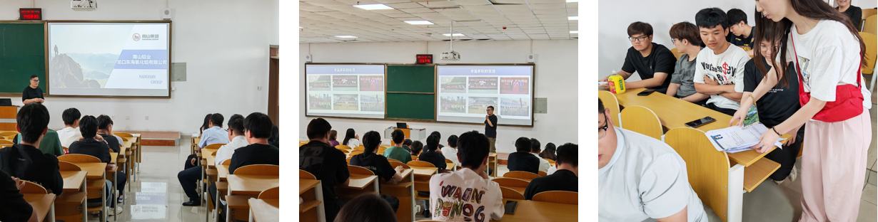 宣讲会上,南山集团龙口东海氧化铝公司的企业代表围绕企业概况、晋升通道、培养战略、乐活南山等四个方面展开详细介绍。龙口东海氧化铝有限公司隶属于南山集团,坐落于美丽的烟台龙口东海工业旅游园区,滨临渤海湾,于2006年12月顺利投产运行,是南山集团铝产业链“热电-氧化铝-电解铝-铝型材-铝精深加工”中的重要一环。作为行业内的领军企业,公司依托南山集团的强大实力,在氧化铝生产领域不断创新突破,采用先进的拜耳法生产工艺、DCS自动化系统集中控制技术,技术装备达到国际先进、国内领先的水平。同时,企业代表着重强调了公司“以人为本”的人才理念,展现出对青年人才的高度重视与培养决心,为同学们描绘出广阔的职业发展前景。