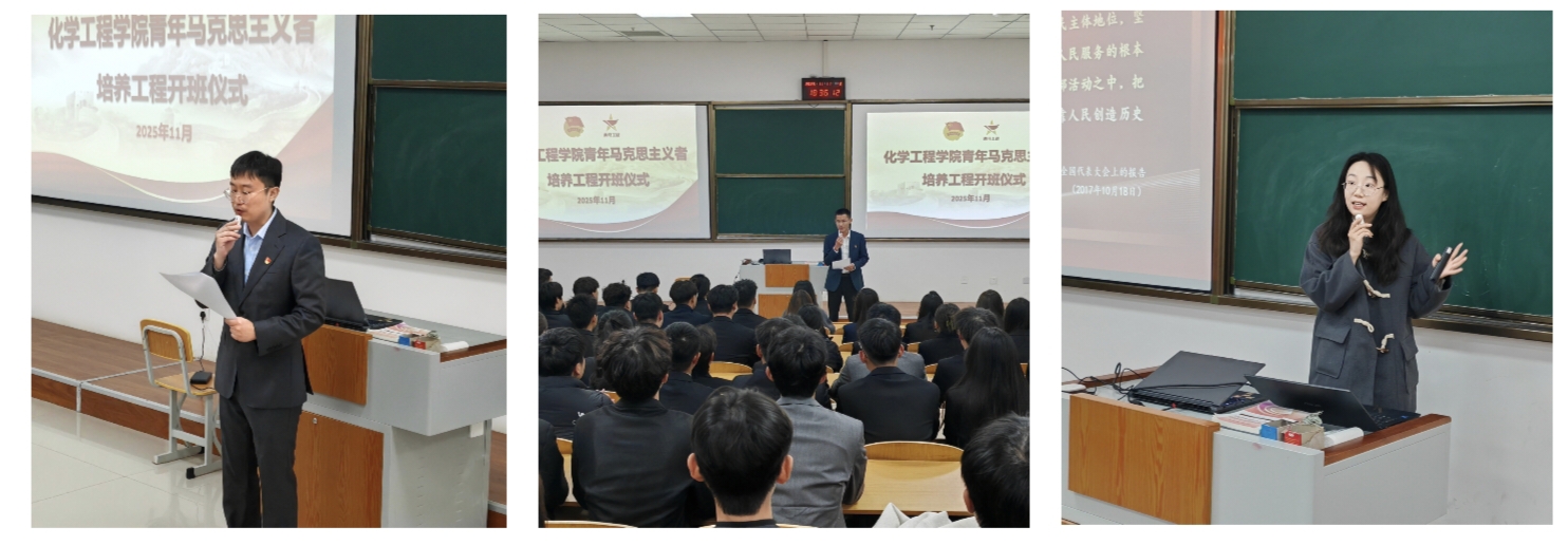 为深入贯彻落实青年思想引领工作,培养政治坚定、能力过硬的青年骨干力量,2025年11月11日,化学工程学院2025-2026学年第一学期青年马克思主义者培养工程开班仪式暨第一堂课在阶梯六教室正式开课。全体青马工程学员齐聚一堂,共同开启理论学习与实践成长的新征程。